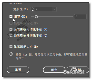 5、再在“细节”这里打上对勾;这个一定要打对勾哦,否则不能实现添加锚点;所有设置好后,点确定。