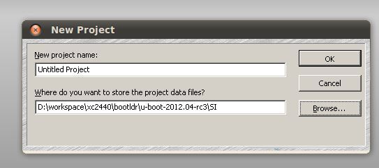 再点OK 确认(这里有一个小疏忽,没有重给项目命名,一般改成和项目一样的名字方面查找,这里可以命名为u-boot-2012.04-rc3).