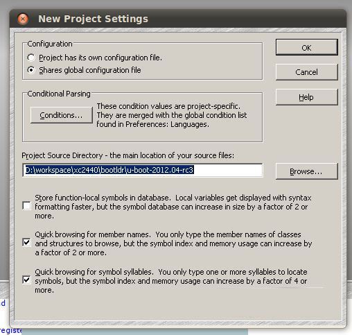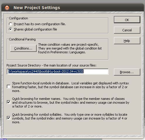下面以实际操作部分以一个u-boot源码新建一个工程来向大家演示具体操作。