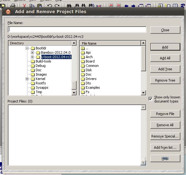 选Add Tree就是将所有的源码加进去,会提示你要加入多少个文件,选OK就行,然后点colse关闭对话框,