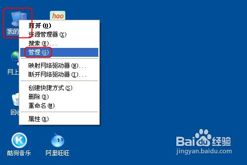 1、首先鼠标右击(我的电脑),点击(管理)。