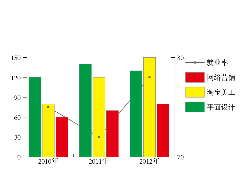 4、为了能够说明就业率的情况,我们应该把就业率制作成一个折线的图表才对。使用“编组选择工具”,两次单击就业率图例,点击菜单栏的“对象”——“图表”——“类型”