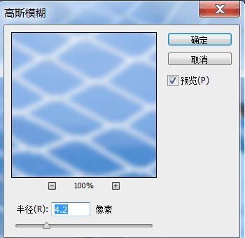 8、执行“滤镜”|“模糊”|“高斯模糊”命令,弹出对话框,设置模糊参数,如图所示。