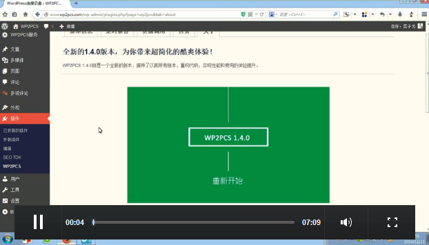 安装好之后,后台左侧的菜单列表中就会出现WP2PCS菜单,最开始要授权和初始化设置。