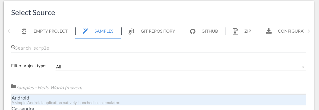 基本上做到这里接下来就没问题了,首先需要新建一个Android项目,可以查看Codenvy公司的镜像(Codenvy和Che的关系你可以去找找资料)。