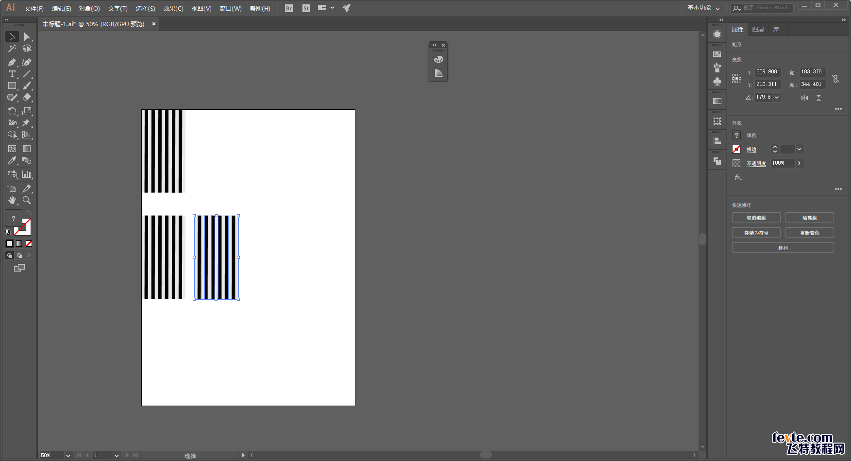 删除中间多余的部分,把复制出来的两个矩形条拼在一起: