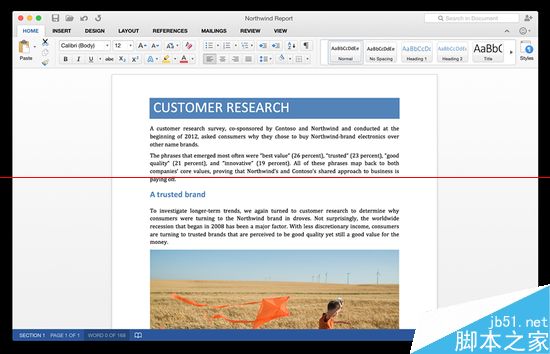 重新设计的针对OS X系统的Word、Excel和 PowerPoint与Office运行在不同平台上的各个版本保持一致,也就说如果你Mac上运行的Office里一个功能位于插入标签里,那么安卓平板电脑上这个功能也将位于插入标签里。此外,还有一个新的任务窗格界面,微软希望放在合适位置、调整大小、旋转图形等操作变得更加容易,此外还有新的主题和样式帮助你整理文档。此外还加入了全屏预览和例如滚动反弹等“Mac功能可见性”特征。微软表示,“很明显这是Office——但它精心设计巧妙的利用了Mac的独特特征。”