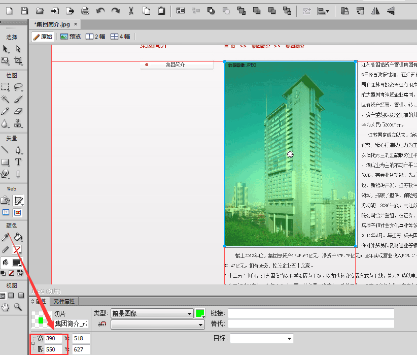 然后选择要切的图片,红色框中是图片的高和宽,里面的值是可以进行修改的,一般用来进行微调。