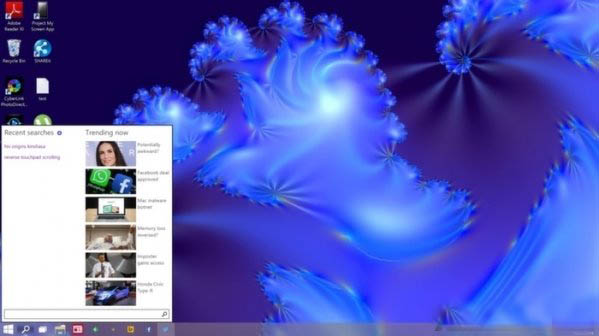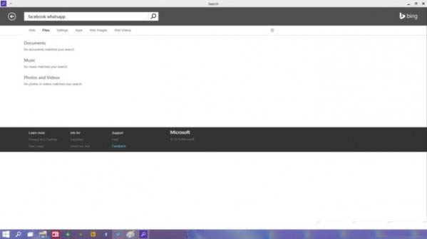 与搜索相关的另外一个重要补充就是在底部开始键旁边的新的搜索app(Search app)。当你点击它时,会出现开始菜单,上面显示“Trending now”(前往)和近期搜索项目(如上图所示)当你输入任何内容并点击确认时,一个完整的搜索app就开启了,与Bing搜索结果页面有些类似(如下图所示)。