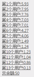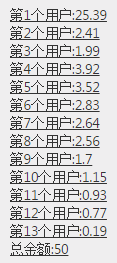 2.数据均匀,这里以 1<n<(剩余金额/剩余红包数)*2,这里防止一个红包抢走大量的钱,这里需要写个递归,去检查数据值是否过大,50元发13个红包的第3图,就是因为没有检查数据,导致钱不平均,这个可以根据自己的玩法去设置.