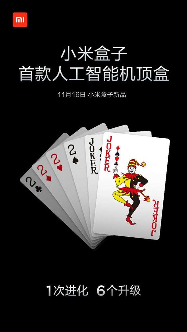此外,小米还在海报中透露这次新一代盒子有“1次进化、6个升级”,但并未透露具体内容,让我们一起期待11月16日的小米首款人工智能机顶盒吧!