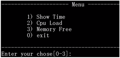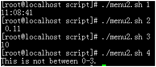 1、修改menu.sh 采用非菜单式,参数传递方式来进行选择。 例如 #./menu.sh 1 输出时间