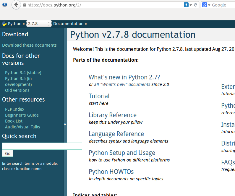 python文档的网址:https://docs.python.org/2/,这是python2.x,从这里也可以找到python3.x的文档。