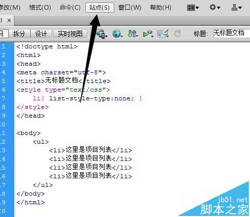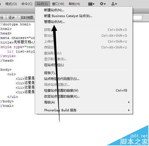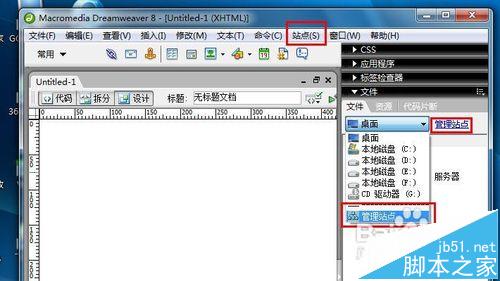 2、那么怎么在dreamweaver里怎样删除自己创建的站点呢?其实很简单,点击菜单栏中的“站点”按钮。