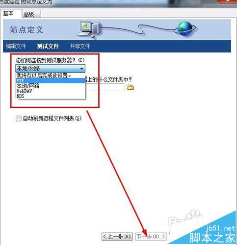 7、如何连接到测试服务器,如果你是新手,你还没有购买网站虚拟空间,你赞可选择“我将在以后完成此设置”,如果你已经有了ftp空间,你可以选择ftp。本地网络指的是你的站点在本地。