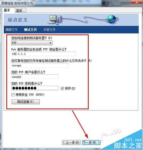 8、如果你选择的是ftp在这一步就要填写你的ftp信息,这些信息是ftp服务商提供给你的。你可以看看我的配置,这是我的服务商提供给我的信息。如果你是新手,可以不选择ftp。