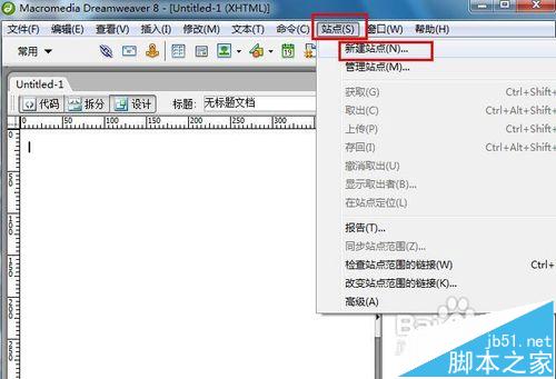 1、在菜单栏上点击站点,在下拉菜单中选择新建站点: