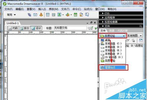 1、在图中的文件栏目中,点击百度经验的下拉菜单,选择管理站点。