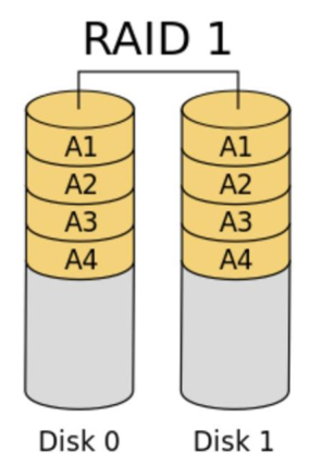 RADI1是镜像存储,没有数据校验,数据被同等的写入到2个或者多个磁盘中,写入速度相对慢, 但是读取速度比较快。
