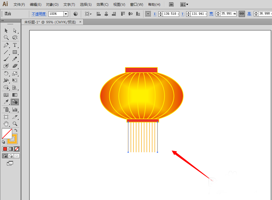 8、再使用选择工具,在空白位置上随意单击一下即可全部完成了一个漂漂亮亮的喜庆的灯笼了。
