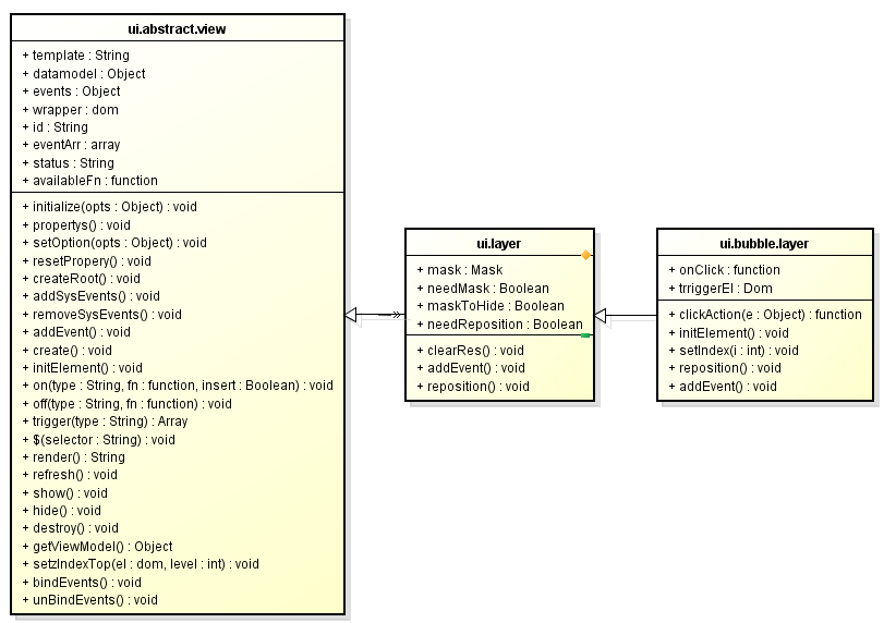 这个也可以是我们整个弹出层类的基本结构,我们可以在此上做很多扩展,但是这里我们不扯太多,单就气泡组件做论述