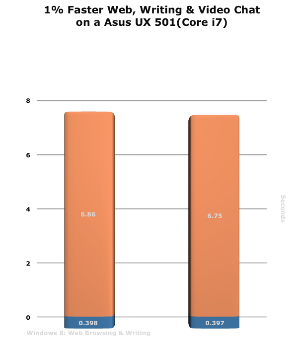 PCMark 8录入、上网、视频聊天:Windows 10微微快了0.11秒,算是个误差吧。