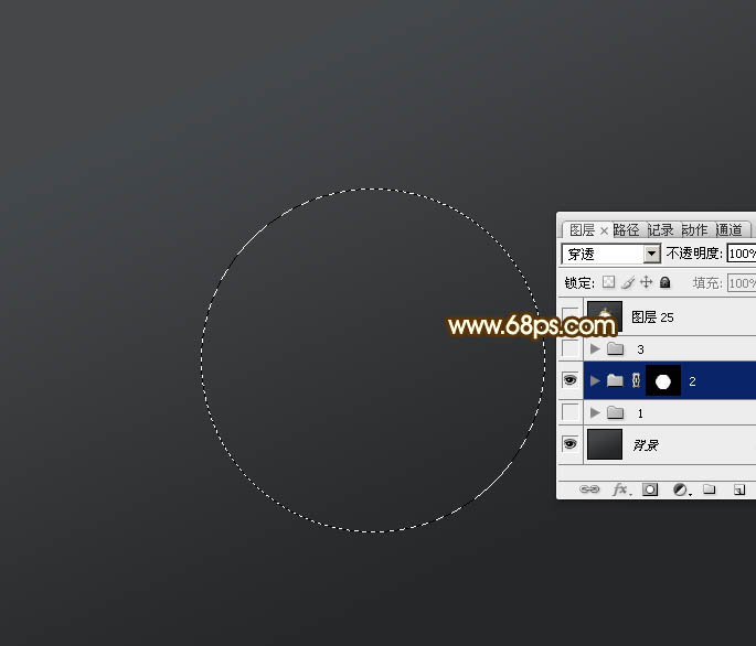 1、新一个800 * 600像素的文件,背景填充黑色。新建一个组,用椭圆选框工具拉出下图所示的正圆选区,给组添加蒙版。