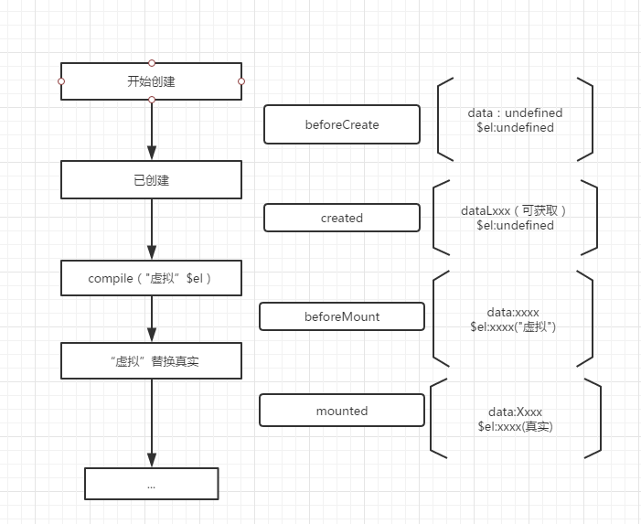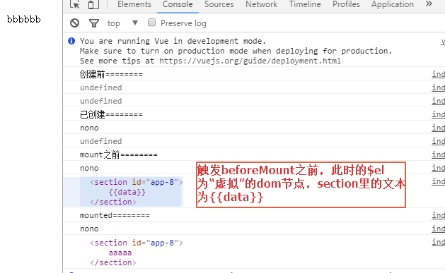 4、mount之后,mounted之前,“虚拟”的dom节点被真实的dom节点替换,并将其插入到dom树中,于是在触发mounted时,可以获取到$el为真实的dom元素()