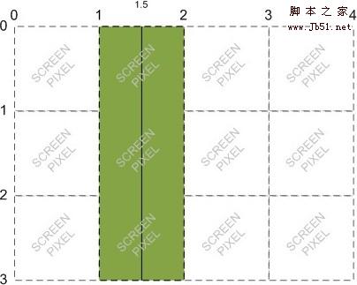 如下图,如果我们给出的起始坐标是(1.5,0)和(1.5,3),那么线条的宽度才是正确的一个像素。