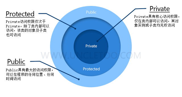 Public具有最大的访问权限,被定义成Public的属性(变量)或方法可以在程序的任何位置、任何时间访问。