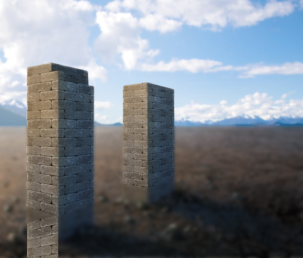 使用图层蒙版或橡皮擦工具露出砖柱部分。我们将使用这一图层作为剪贴图层。