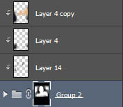 4、把模特的图层编组(按住Ctrl键并在图层面板中选择模特的图层,然后按CTRL+G)。然后在图层面板 底部选择 添加图层蒙版来为这个组添加蒙版,然后选择 软圆笔刷并使用黑色。