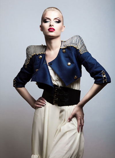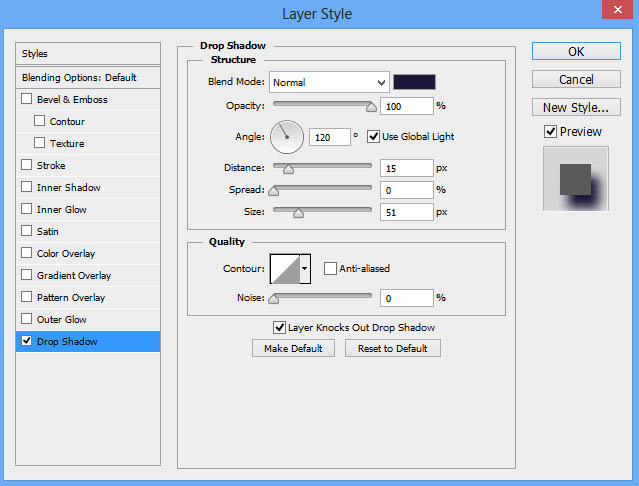 6、新建一个图层并选择上面提到过的画笔,并把颜色设为#7B78FF (画笔 不透明度 – 20%)。把这个图层放在模特的图层下面。