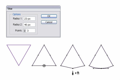创建字母A。使用星形工具,制作一个如下图所示数值的倒三角形。打开变形面板,选择180垂直翻转。