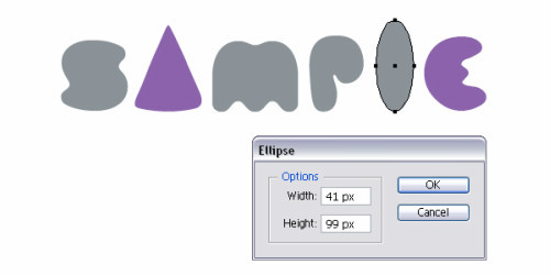 到此,你的A字母应如下图所示,接下来,制作E字母。使用椭圆工具制作一个81像素圆,原型和E字母的左侧应该完美组合。