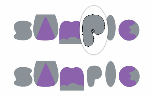 选择letterM 的另一个副本,将此图层置于最后。直接选择工具选择如图所示的锚点下移如图