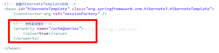 <!-- 使用查询缓存 --> <property name="cacheQueries"> <value>true</value> </property>