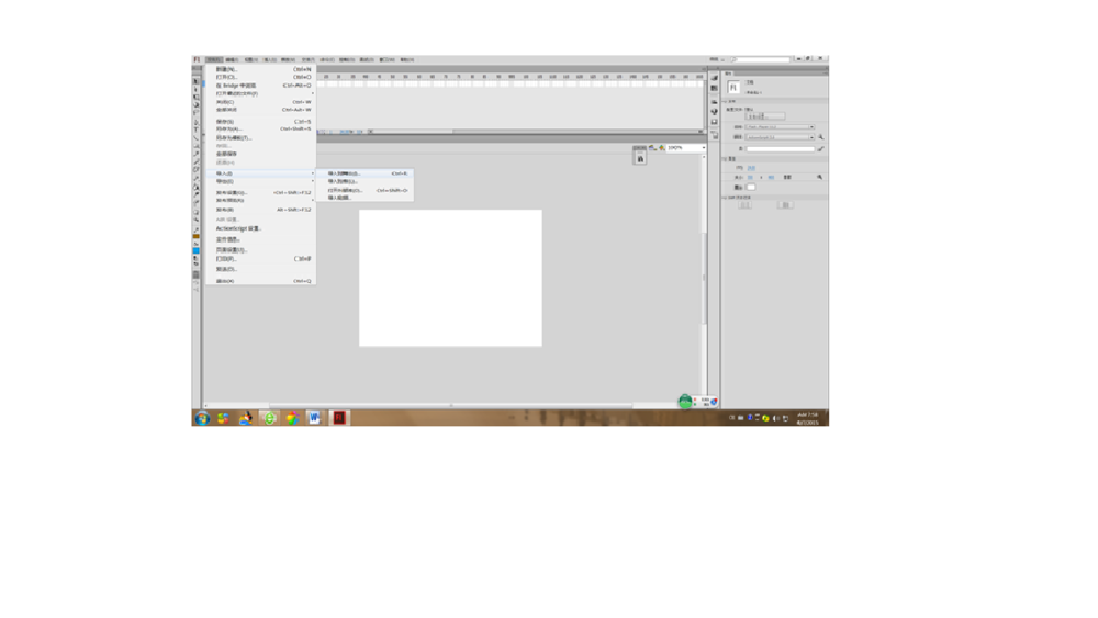 1、打开Flash软件后,导入一副背景,单击【文件】→【导入】,在导入中选择导入到舞台;