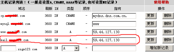 如果您还有邮局,邮局的IP是59.44.127.130继续来,增加一个A记录,指向您邮局的IP。![]()