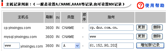 首先增加一个A记录,并填写对应IP地址