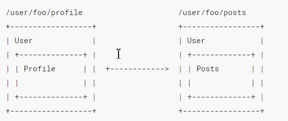 即user表示用户页, 而user就可以看成是vue中的一个单页面,对于一个user,一定要有哪一个用户,这里的foo(小明、小红)就代表了一个用户,这里的profile可以理解为个人主页,这里的posts可以理解为这个人所发表的文章, 而title可能是不变的,比如无论切换到这个人发表的文章,还是切换到这个人的个人主页,我们都希望在最上方显示同样的东西,而在切换的时候换的就是下面的部分,这个部分我们就可以用<router-view>来写,那么,这,就是嵌套路由。
