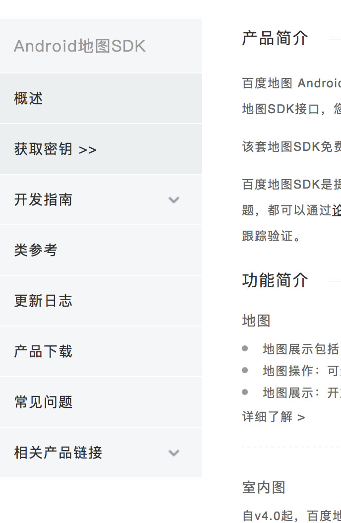 选择功能与服务中的地图,点击左边的获取密匙,然后按照要求申请即可,需要手机和百度账号及邮箱认证。