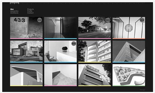 网站整体采用灰度系的颜色来设计,给予用户一种神秘的感觉,但这种色系同时也容易带给用户深沉郁闷的情绪,并不适宜作为大范围使用考虑的色彩格调,除非你能巧妙地使用,能够让用户在浏览网站时感受到“拨开云雾,柳暗花明”的奇妙体验。如下一个网站,把鼠标放在个图片上,立马显示原有的丰富色感。