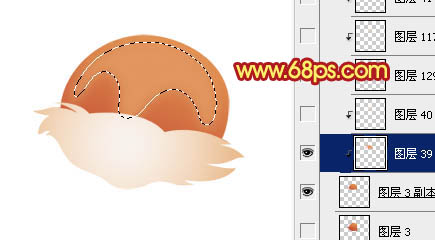 新建一个图层,按Ctrl + Alt + G 与前一图层编组。确定后在当前图层下面新建一个图层,用钢笔勾出高光部分的选区,按Ctrl + Alt + D 羽化5个像素后填充颜色:#E1965F,效果如下图。