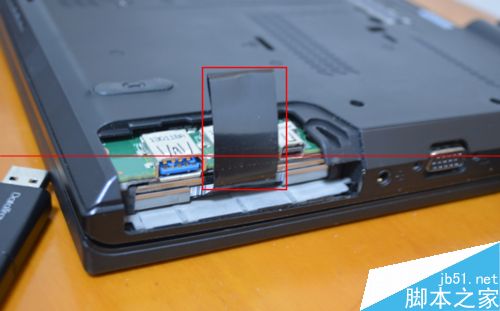 5、下图圈住的黑色拉带,默认放在硬盘的上下缝隙里,将其取出,拉出硬盘即可。