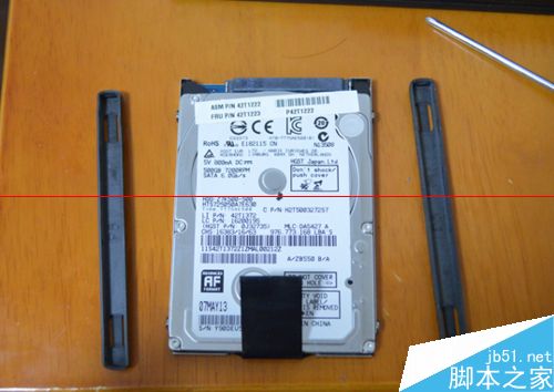 6、原硬盘拿出后如图所示(两侧长条为橡皮护垫):