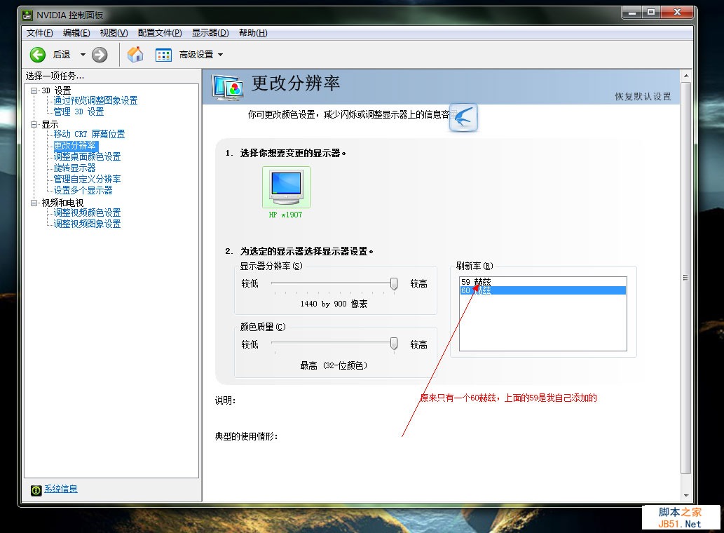 我从驱动精灵上下载了英伟达的最新显卡驱动,结果重启后还是出现了Error in InitRenderer().Shutting down,我就开始找原因。以我个人的技术,目前能动的地方只有控制面板的英伟达显卡控制中心(应该叫做NVIDIA控制面板),我隐约记得以前XP运行游戏的时候貌似刷新率是59赫兹(HZ),而在win7的这个选项里只有一个60,貌似就是这个原因导致CF进不去。
