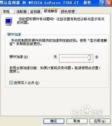 桌面空白处单击右键-属性-设置-高级-疑难解答-“硬件加速”拖到最右边,然后确定。