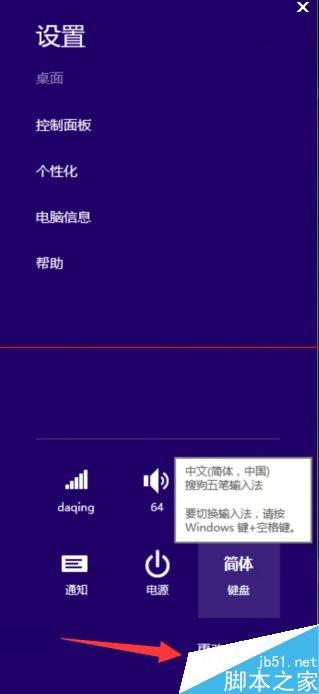 2、然后,我们打开电脑,因为小编的电脑是WINdows8系统,所以这里用Win8系统下的电脑来进行操作演示,把我们的鼠标往桌面的最右侧移动,直到右侧弹出一栏工具栏,这里我们点击打开“设置”。