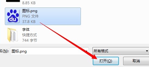 4、选择要做3D旋转效果的logo图标,点击打开。